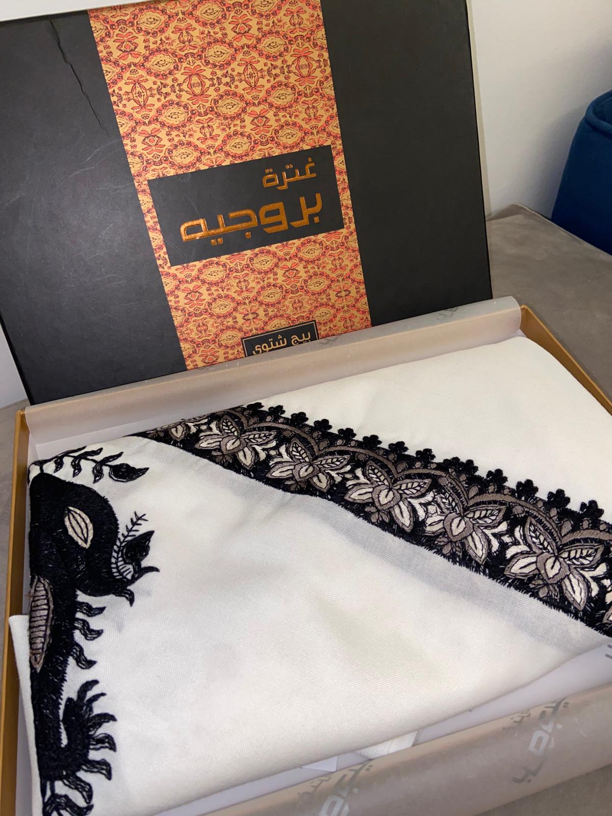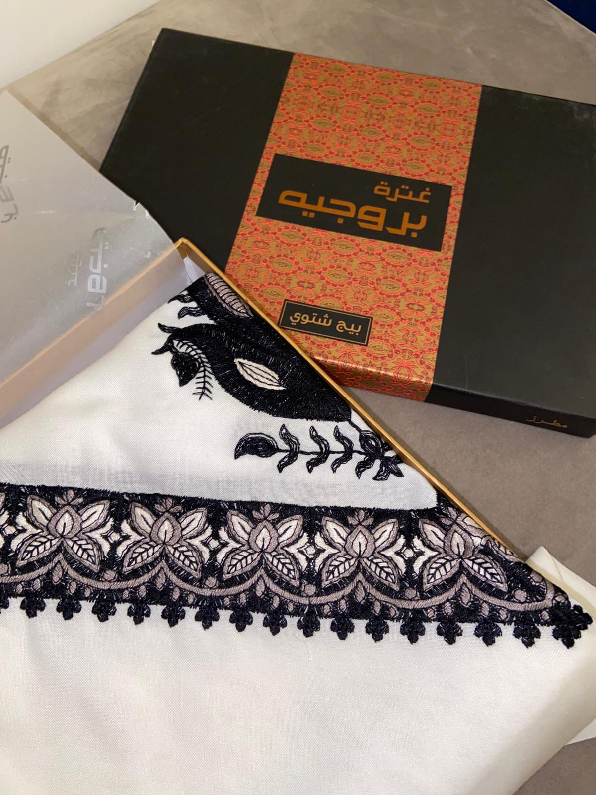 غترة مطرز بروجيه بيج شتوي -1